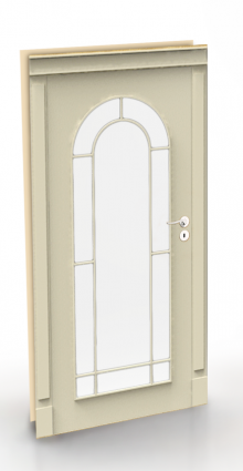 - оконное сатиновое стекло, матовое стекло(lacomat) или орнаментное украшены планками